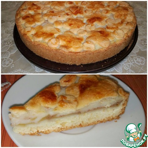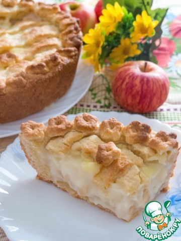 Хрупкое, рассыпчатое, деликатное песочное тесто. Нежнейшая, воздушная, легкая начинка и ароматные, сочные яблоки. По-моему, идеальное сочетание... Пирог совершенно несложный и готовится довольно быстро. Угощайтесь, это вкусно.