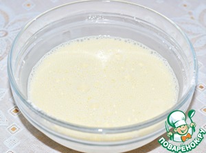 Оставшиеся 200 мл молока хорошо подогреть, растворить в молоке сахар.