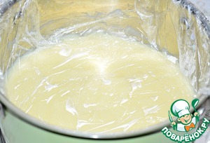 Прикрыть начинку-крем пищевой пленкой так, чтобы пленка соприкасалась с поверхностью (чтобы не образовалась корочка). Остудить до комнатной температуры.