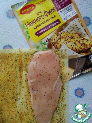 - Приправа (MAGGI® На второе для нежного филе куриной грудки) — 1 пакет.