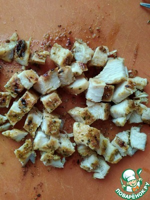 Филе куриное приготовить согласно инструкции на упаковке к MAGGI® "На второе для нежного филе куриной грудки".
