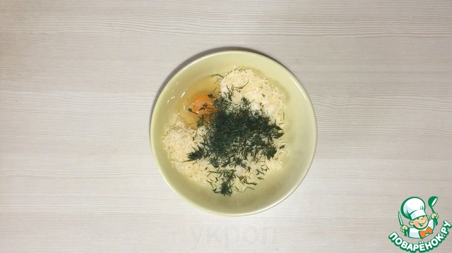 2. Добавить укроп, одно яйцо. Хорошо перемешать.
