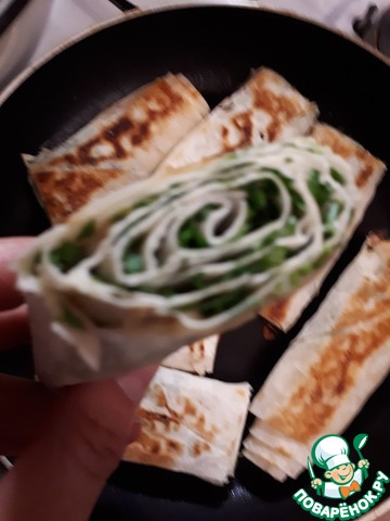 Хрустящий обжаренный лаваш и горячий расплавленный тянущийся сыр внутри. Минимум затрат средств и времени, максимум удовольствия.