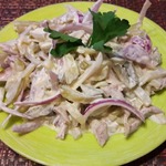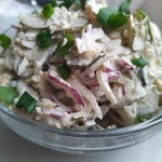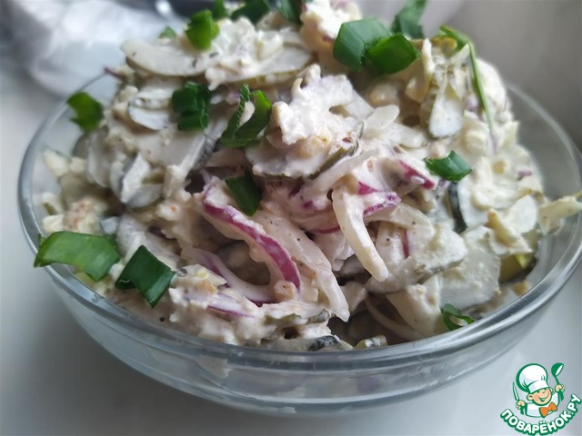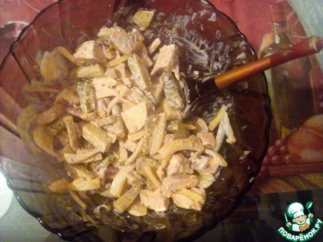 Заправляем салат по вкусу - майонезом или густым йогуртом.