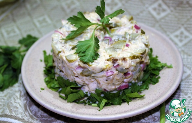 Бомба. Салат - фурор. Неимоверно простой и потрясающе, восхитительно вкусный. Если вы хотите побаловать любимых мужчин - готовьте этот салат. Если хотите произвести впечатление на гостей - готовьте этот салат. Почему именно для мужчин? Они, простите за подробности, всегда хлебушком выбирают последние кусочки из салатника))) Салат удивительно простой - всего 3 составляющих. Готовить его можно (и нужно) часто и с удовольствием. Что я и делаю уже много лет! Да, забыла, он обязательно будет у нас на новогоднем столе)