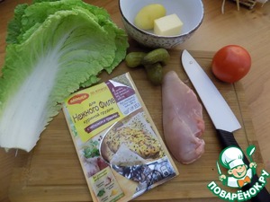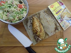 - Приправа (1 лист Maggi для нежного филе куриной грудки с чесноком и травами) — 1 пакет.