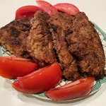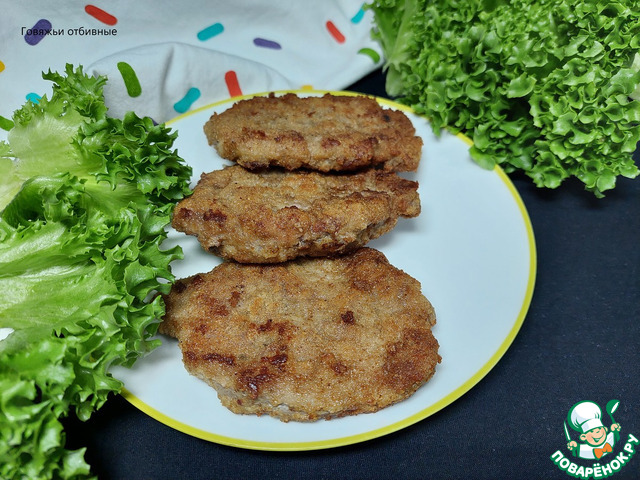 Отбивная из говяжьей мякоти, в хрустящей крахмально - сухарной панировке, с легким соевым оттенком - это очень вкусно... и просто. Угощайтесь.