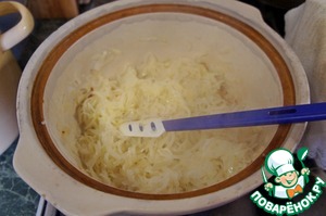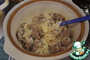 Растопить масло в казане, потушить в нем нашинкованный репчатый лук до мягкости.