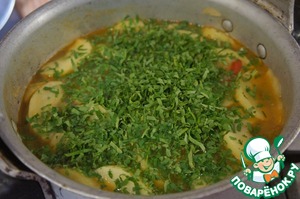 перец красный горький молотый, перец черный молотый, соль – по вкусу, зелень (кинза, укроп, петрушка) – 10 г.;