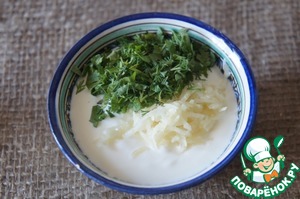 Приготовить тузлук: смешать сметану с чесноком и зеленью.