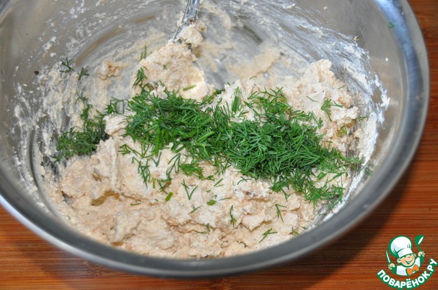 Добавляем мелкорубленную зелень по вкусу и желанию. У меня укроп. Кто-то любит кинзу, петрушку, сюда хорошо подходит базилик. Перемешиваем.