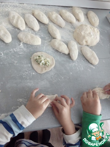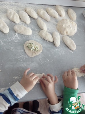 Готовое тесто обминаем и формуем. Мы сделали пирожки.