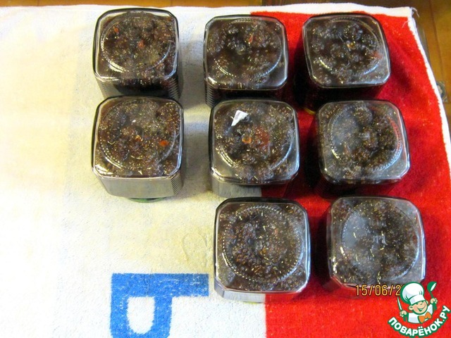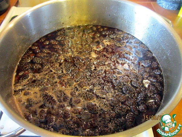 Прошло 4 часа, варенье готово. Видно как оно уварилось.