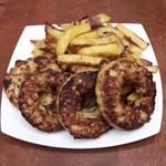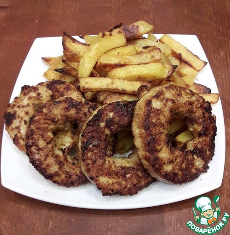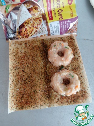 Мокрыми руками из фарша формуем бублики, выкладываем на лист для жарки.