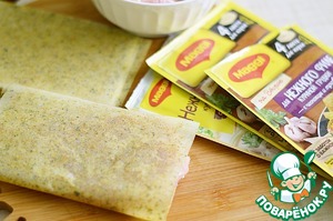 MAGGI на второе для нежного филе куриной грудки. Выложить на одну половину филе.