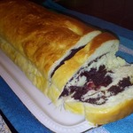 Рулет вместе с бумагой положить на противень или в длинную форму для кекса, как у меня. Смазать рулет яйцом, которое осталось от теста. Поставить рулет в теплое место для расстойки на 20 минут. Я поспешила, и рулет у меня сбоку немного потрескался при выпечке, так что не повторяйте моих ошибок. После расстойки поставить рулет в разогретую духовку и печь при температуре 180 градусов примерно 30 минут.