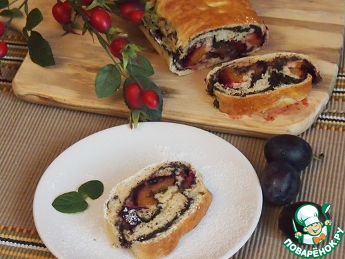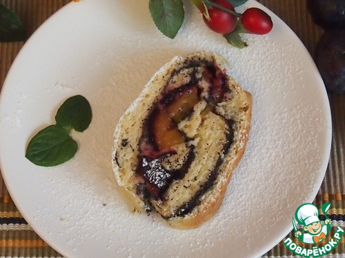 В хмурый осенний день нет ничего лучшего, чем попить чайку с домашним ароматным пирогом! Предлагаю испечь очень вкусный и красивый пирог-рулет с начинкой из мака и сладких сочных слива. Уверена, что вам понравится! Заходите на огонек!