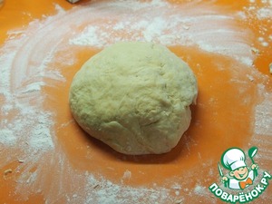 Замесить тесто. Если оно получается жидковатым, добавить еще немного муки. Тесто не должно быть плотным, как только почувствуете, что оно уже не липнет к рукам, значит, муки достаточно. Поставить тесто в теплое место, накрыв полотенцем, на 30-40 минут.