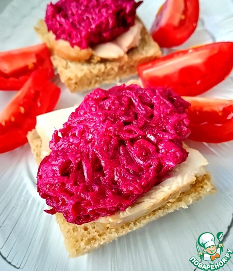 Чудесный бутерброд! А какой красивый Соус из сырой свеклы необычный!