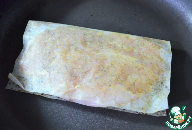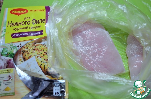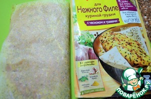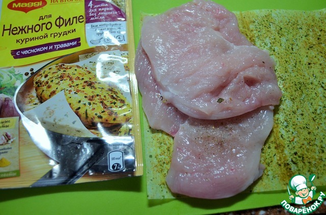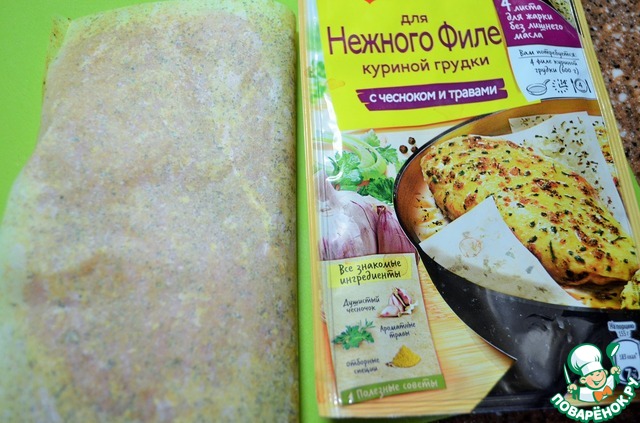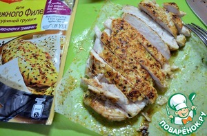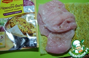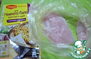 • Филе куриной грудки разрезать на две тонкие пластины,