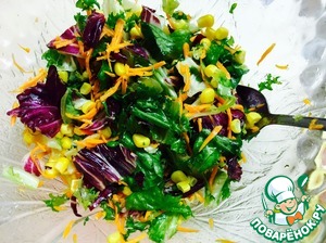 Салат заправляем маслом и перемешиваем |