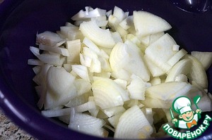 В каждый горшочек (у меня их 6) влить понемногу растительного масла – просто чтобы дно было смазано. Выложить слоем картошку, затем лук, говядину, сверху свинину. Солить и перчить лучше послойно, но без фанатизма.