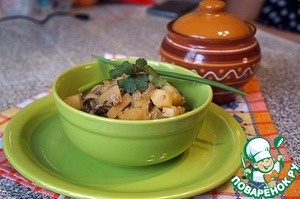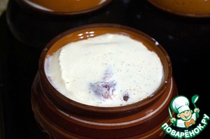 Горшочки накрыть крышками или фольгой, установить на противень, поместить в разогретую до 200 градусов духовку и запекать 50 минут.