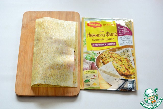 - Приправа (лист для жарки "МАГГИ" на второе для нежного филе куриной грудки c чесноком и травами) — 1 шт