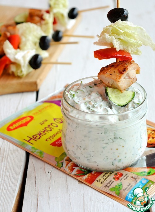 Рецепт «Канапе "Куриные брошетты" с соусом-дипом»: