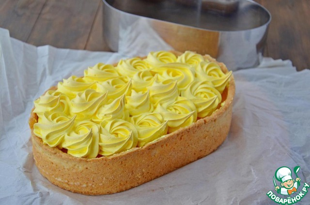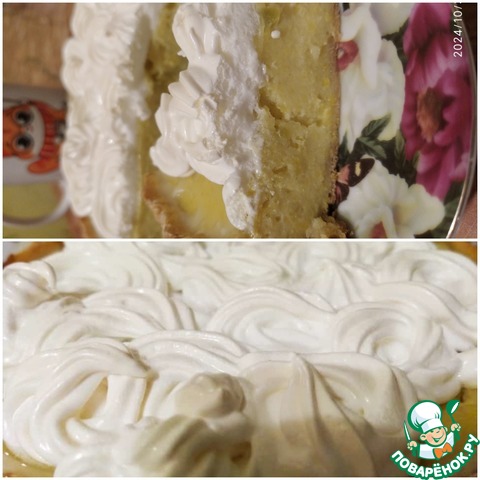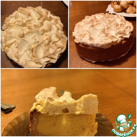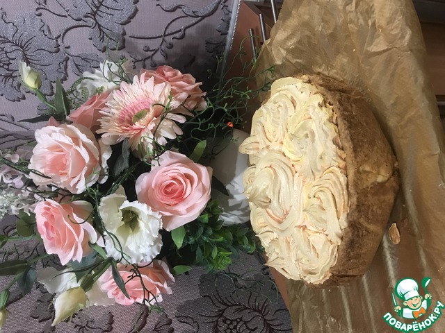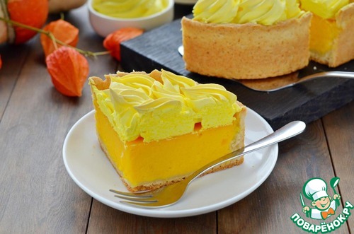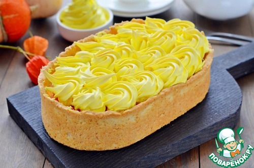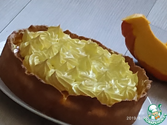 Предполагалось испечь просто тыквенный пирог, но от выпечки песочных коржей для торта остались белки, и я решила украсить пирог кремом "Мокрое безе". Вышло очень вкусно и празднично.