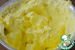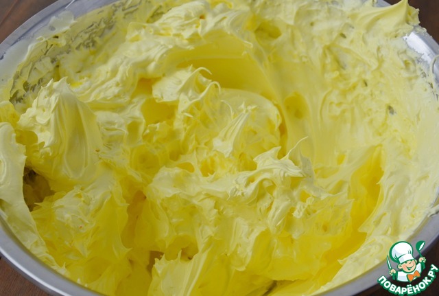 Вот такой густой, блестящий и красивый крем получается, в процессе взбивания я добавила желтого красителя, но это на ваше усмотрение.
