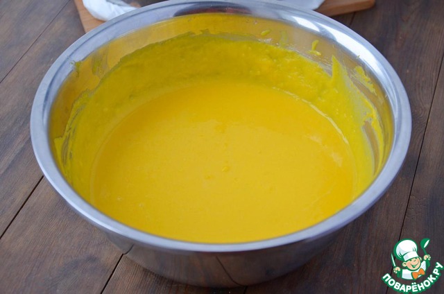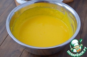 Мякоть печеной тыквы с цедрой лимона пробить блендером, добавить лимонный сок, сметану, яйца, муку, сахар и ванильную эссенцию, хорошенько перемешать венчиком.