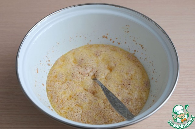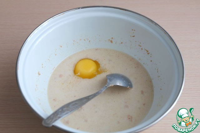 В смесь добавить 1 яйцо, соль (1 ч. ложка). Смесь хорошо размешать.
