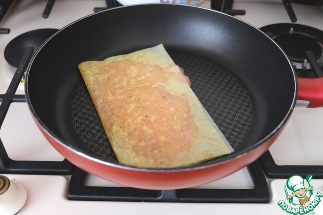 Накрыть второй половиной листа. Завернутую грудку прижать рукой.