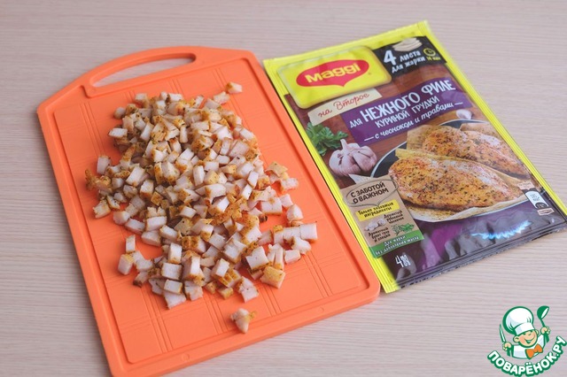 Грудку нарезать мелкими кубиками.