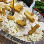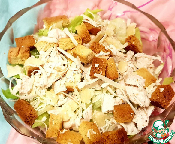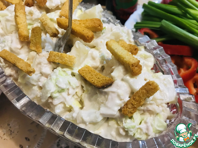 Салат из куриного филе, сыра, пекинской капусты и сухариков...