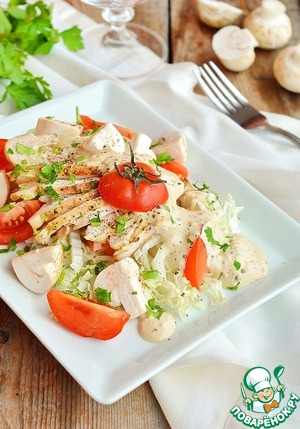 Рецепт «Хрустящий салат с курицей и шампиньонами»:
