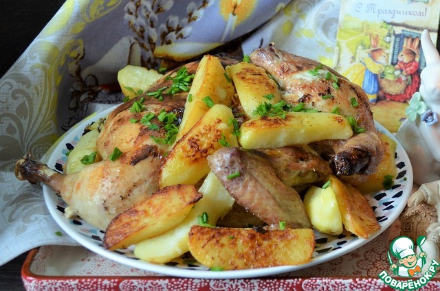 Элементарный способ приготовления из серии : "намазал маринадом и запёк". Но вкус... просто чудесный. К курице отлично подойдет салат из свежих овощей