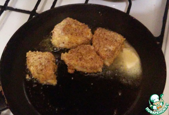 На среднем огне с двух сторон жарим сыр до золотистого цвета