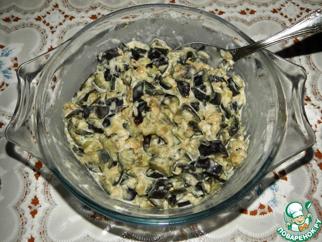 Отварить баклажаны в подсоленной воде. Слить воду, слегка промыть холодной водой. Дать хорошенько стечь. Добавить сметану, выдавленный чеснок, горчицу, сбрызнуть лимонным соком.