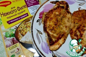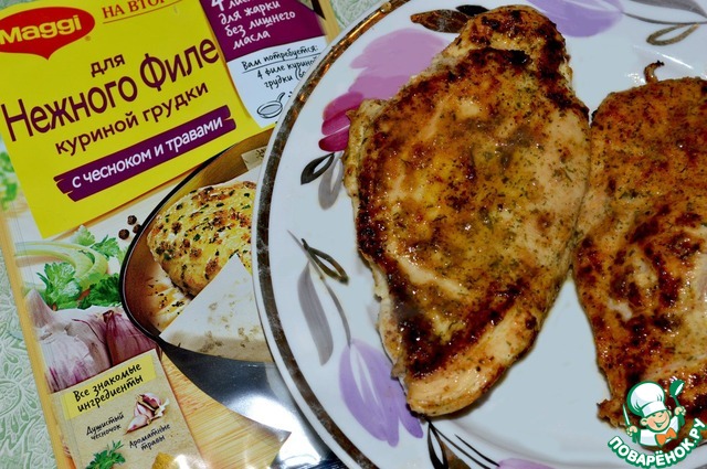 - Приправа (листы Магги для нежного филе куриной грудки "с чесноком и травами") — 2 шт