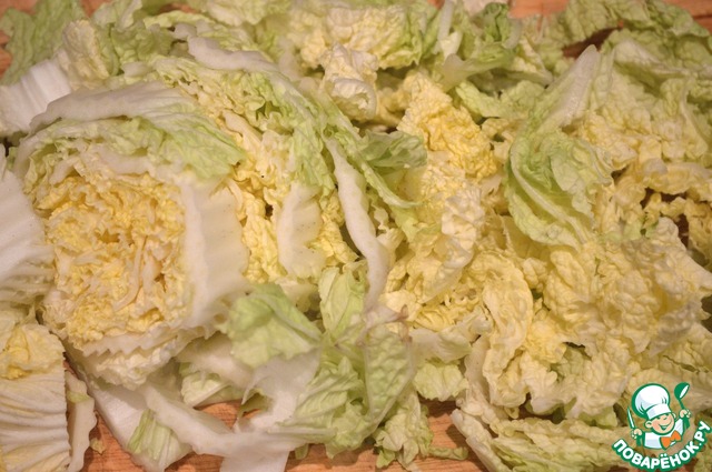 Пекинскую капусту режем соломкой.