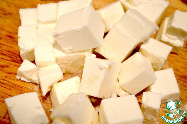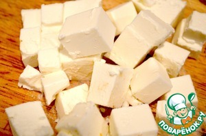 Брынзу нарезаем небольшим кубиком.