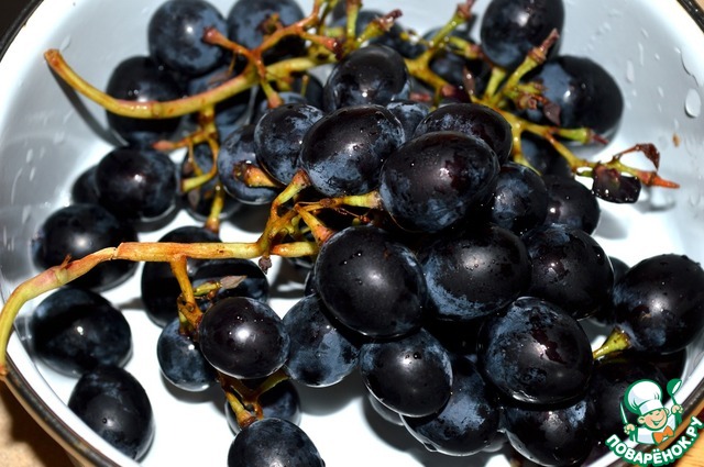 Виноград моем, если крупный режем пополам. Виноград можно брать любой зеленый, красный, синий и т. д. самое главное чтобы он был сладкий и без косточек.