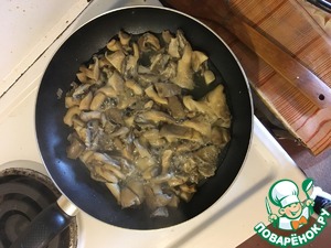 Грибы (я беру вешенки свежие) помыть, порезать и слегка обжарить на небольшом количестве растительного масла.