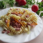 Макароны с колбасой