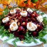 Предлагаю вашему вниманию салат из запеченной свеклы с творожным сыром и рукколой.