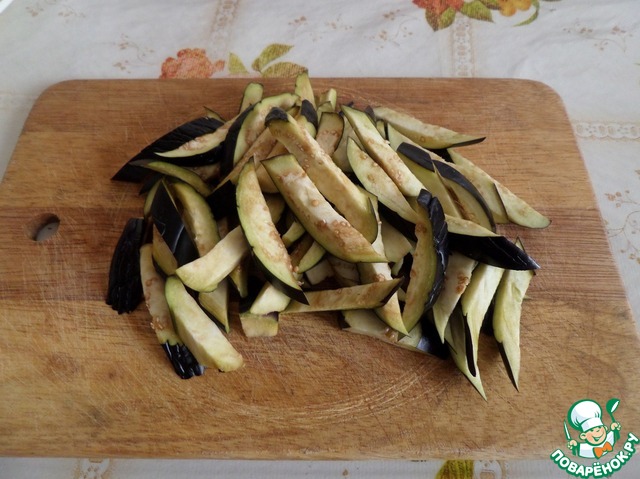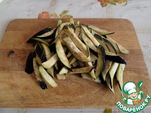 Баклажаны нарезаем соломкой.