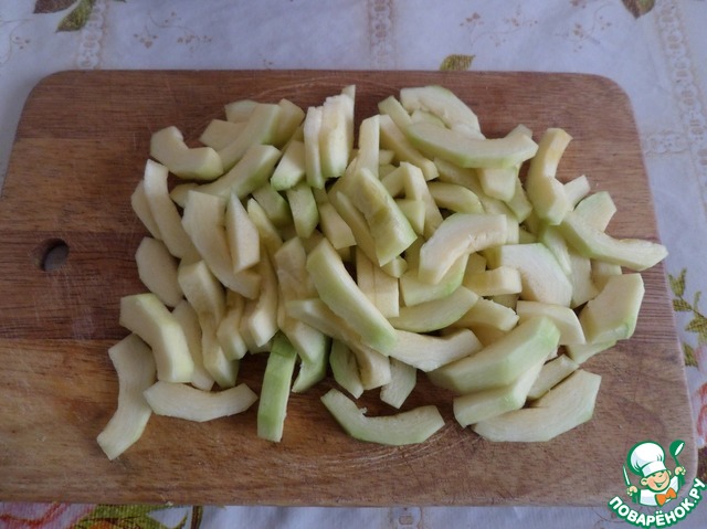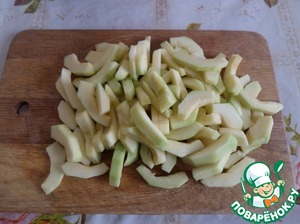 Кабачки очищаем и нарезаем.