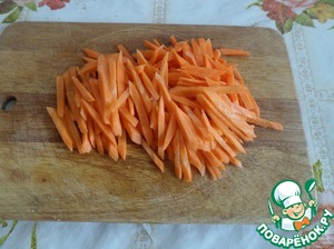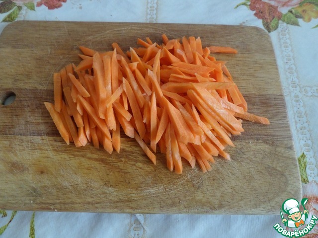 Нарезаем морковь.